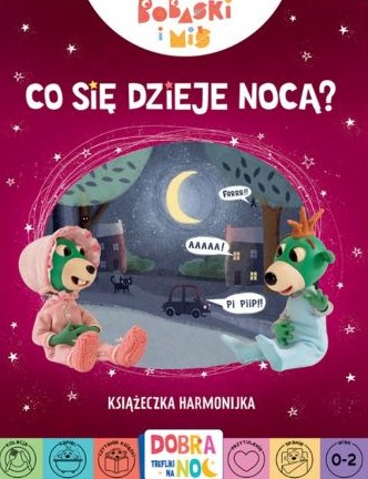 Co sie dzieje nocą? : książeczka harmonijka / Patrycja Wojtkowiak-Skóra ; [projekt okładki oraz ilustracje Agnieszka Matz]. - Wydanie 1. - Kraków : Wydawnictwo Trefl, opyright2020. - 1 harmonijka ([12 stron]) : ilustracje kolorowe; 19 cm.